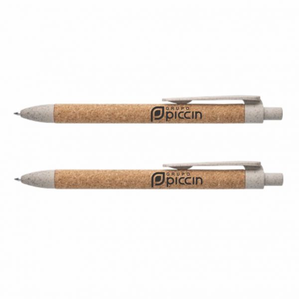 12 CANETA ESFERO EM CORTIÇA E ELEMENTOS COLORIDOS EM FIBRA DE TRIGO E PP – SP.59719